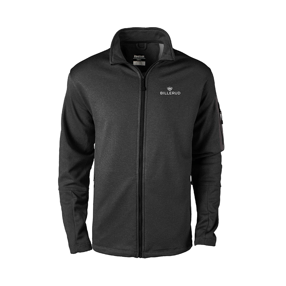 7.5 oz. 100% Polyester Tech Fleece Full Zip Jacket. Teflon coated to repel water, oil and stains. Reebok logo heatsealed on right pocket. Billerud logo embroidered on left chest.