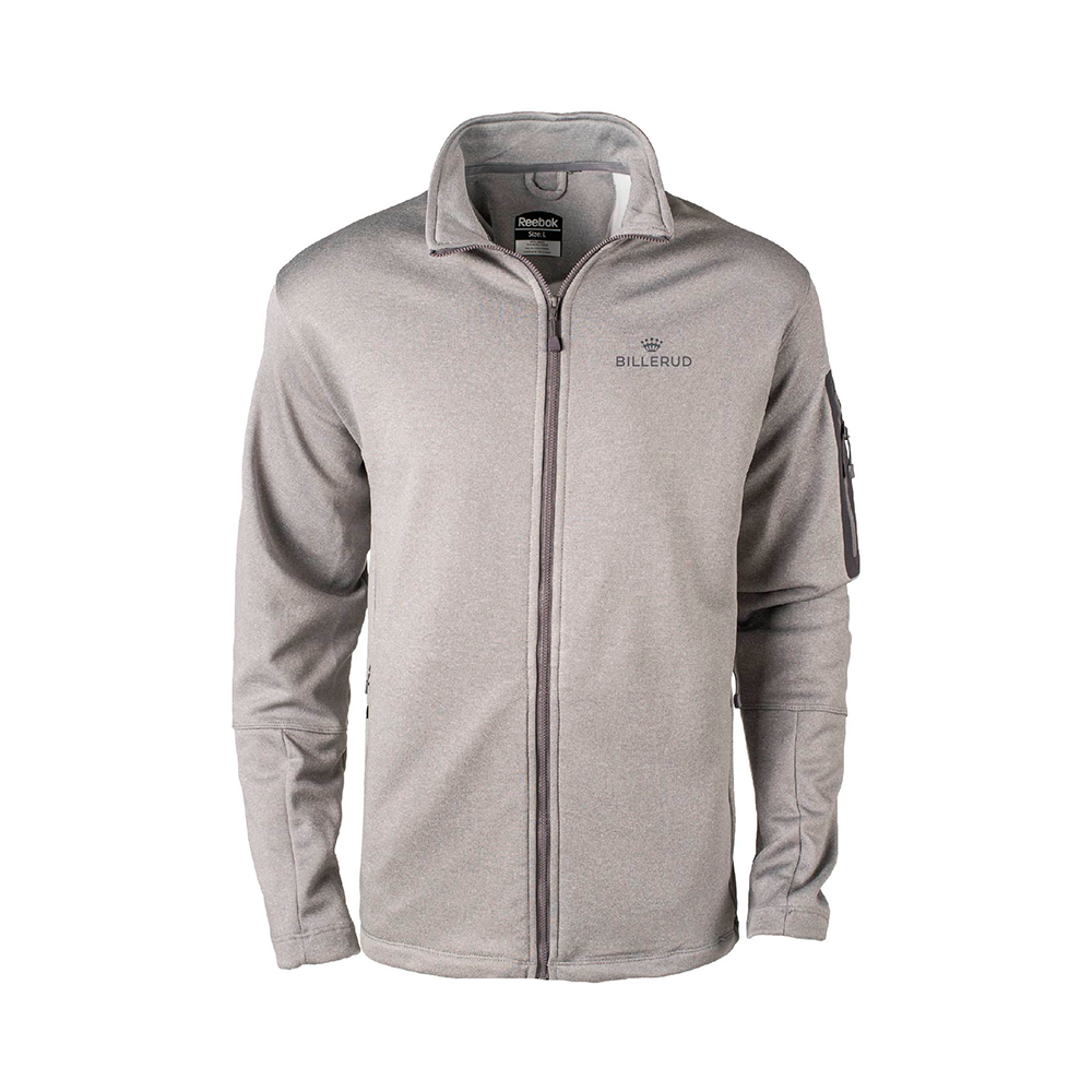 7.5 oz. 100% Polyester Tech Fleece Full Zip Jacket. Teflon coated to repel water, oil and stains. Reebok logo heatsealed on right pocket. Billerud logo embroidered on left chest.