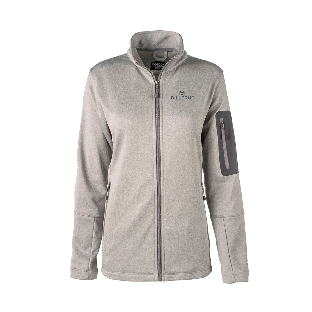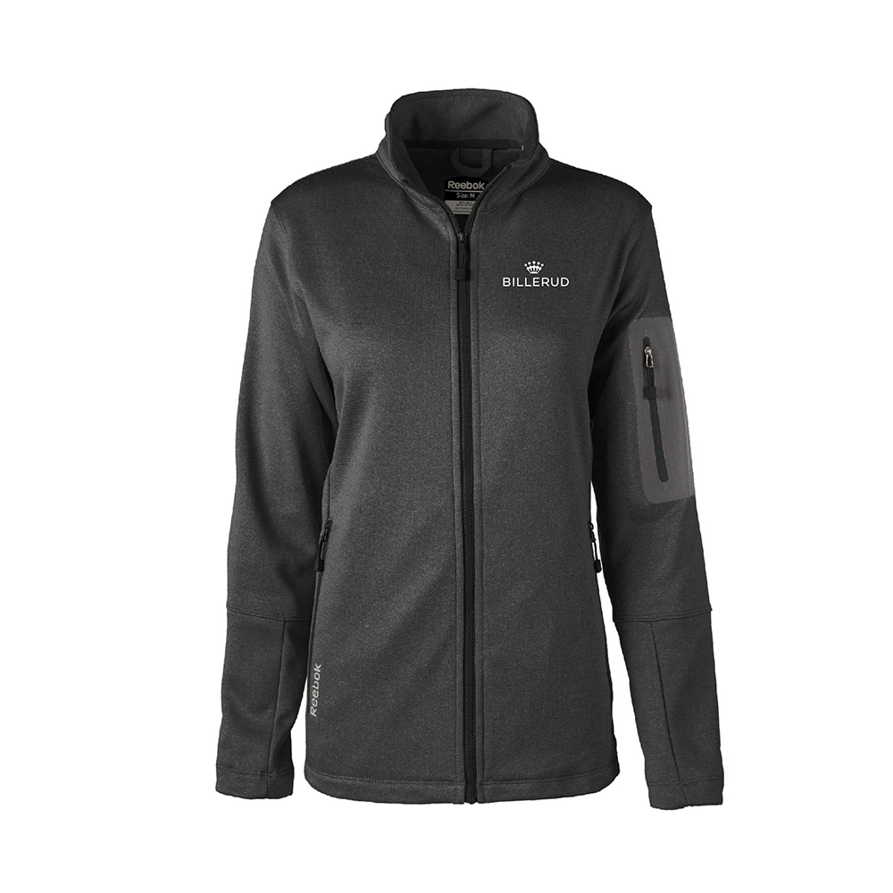 7.5 oz. 100% Polyester Tech Fleece Full Zip Jacket. Teflon coated to repel water, oil and stains. Reebok logo heatsealed on right pocket. Billerud logo embroidered on left chest.